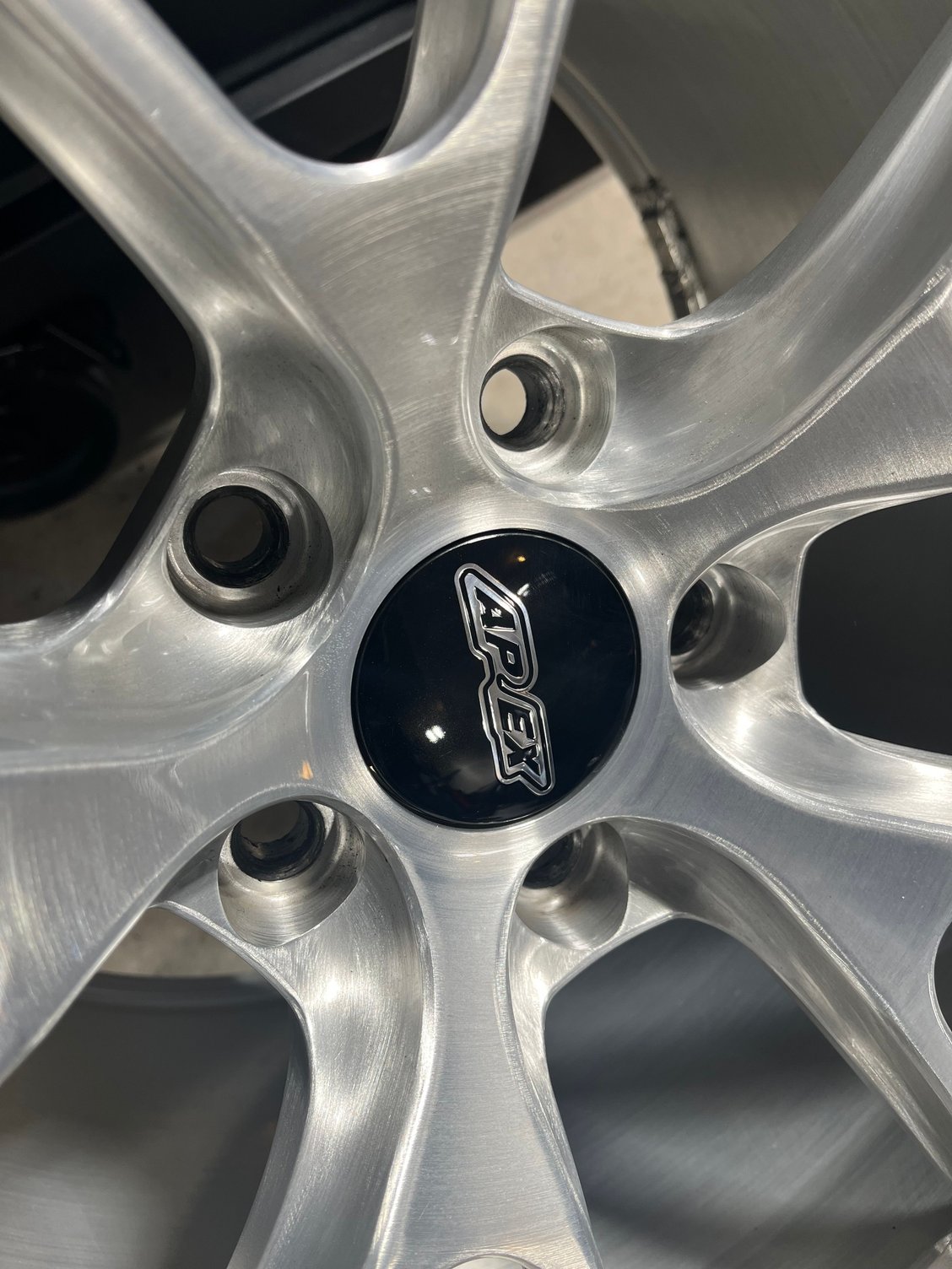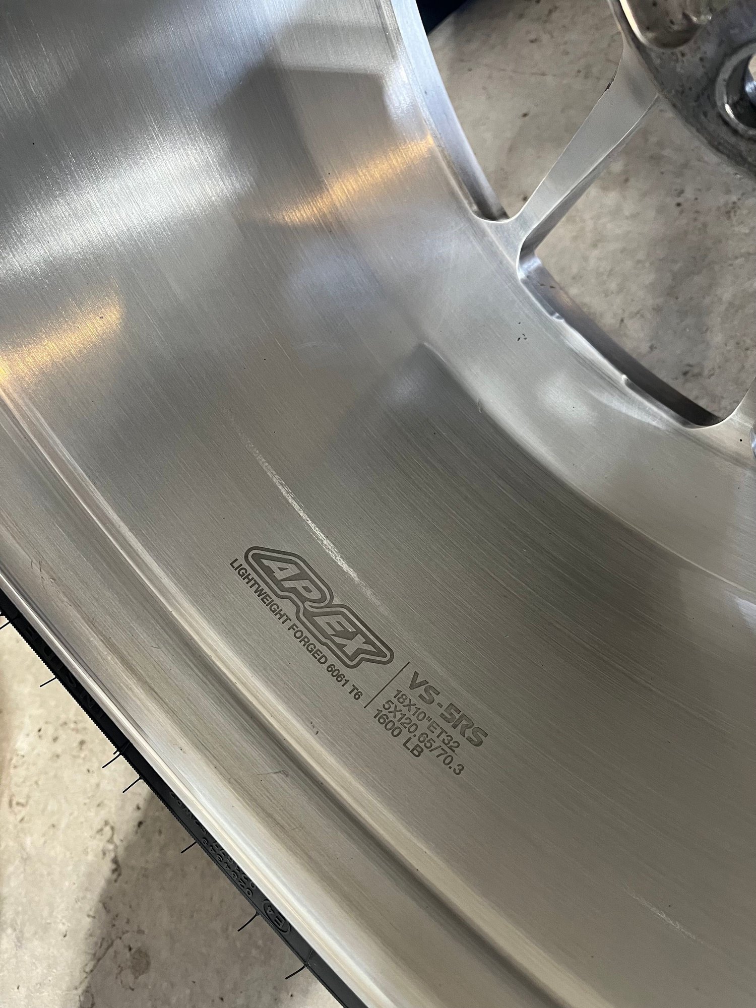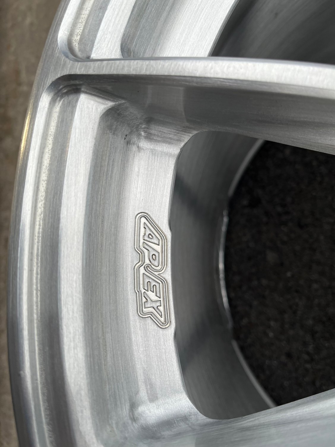 Complete set of Apex forged VS-5RS wheels in excellent condition and very clean. Color/finish is brushed clear. The wheels have less than 1000 miles on them and have no damage, repairs, or curb marks.