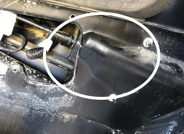 So no 12 volt power on the solenoid connector means either corrosion problem in the C180 connector, of wires broken at the S bend at the bell housing going back areas, that will need to be repaired isntead. To get to the S bend in the harness to repair the wires, muffler and torque tube cover needed to be removed.