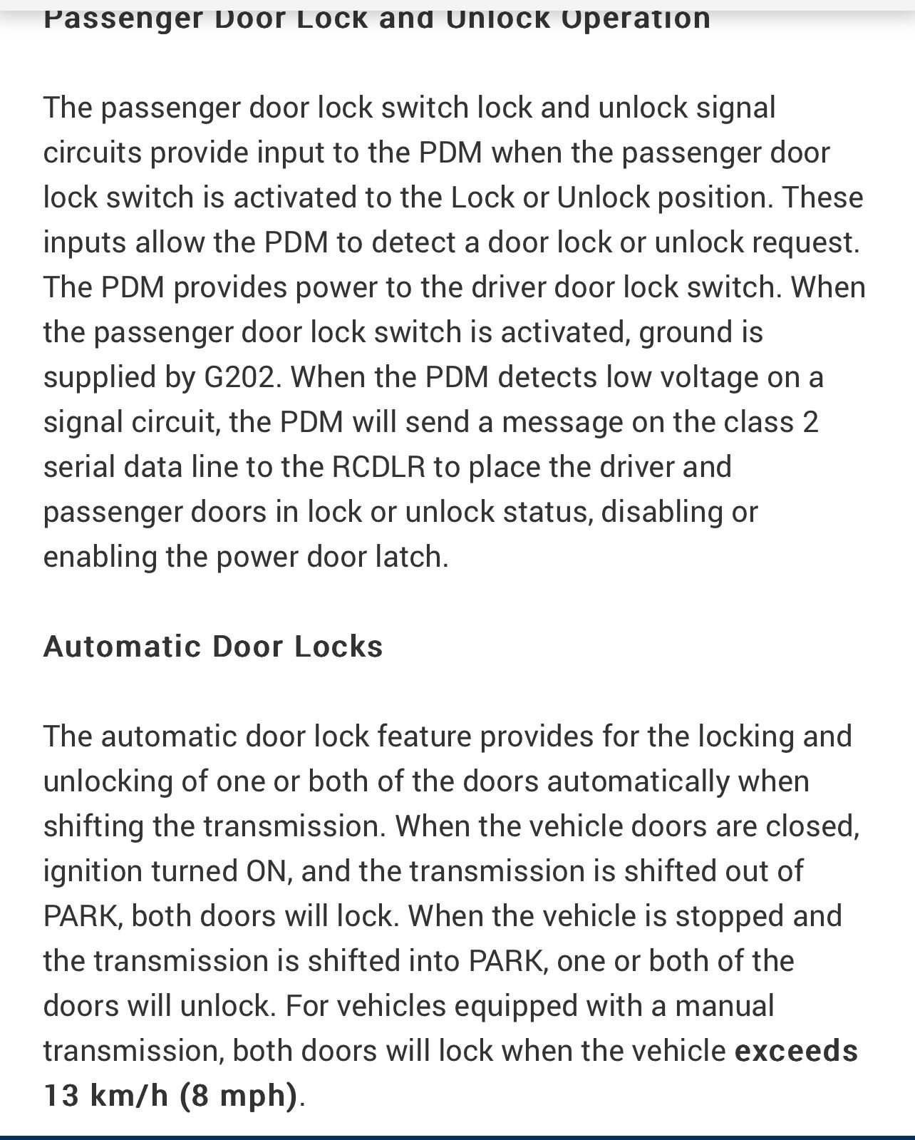 Note, no real door locks on the car, and it just a BCM function that will not allow the doors actuators to work/get power to unlock the doors, until you press the unlock button again.