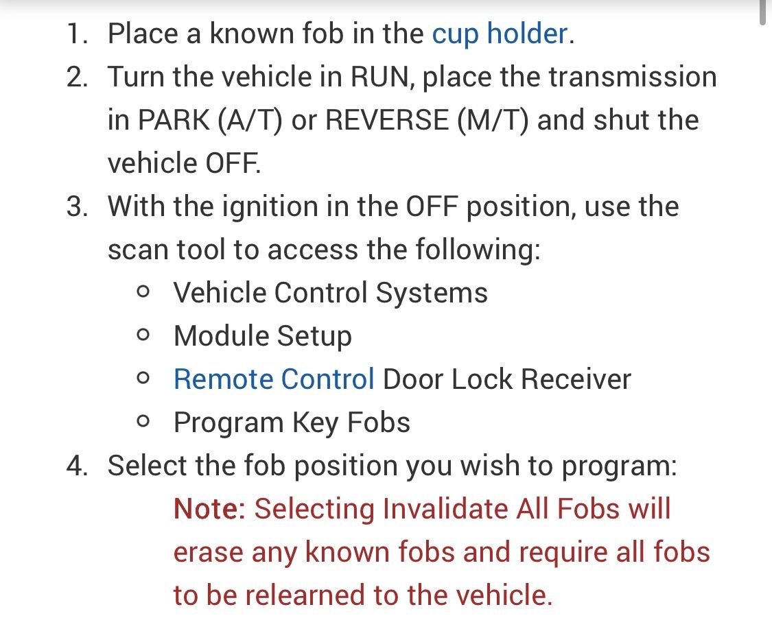 I really don't want to go through Long Procedure as Owners Manual Spells out, or with some of instructions in Forum. FOB1 and FOB2 make use of my Memory functions in car as you know. FOB Slots 3 and 4 don't.
