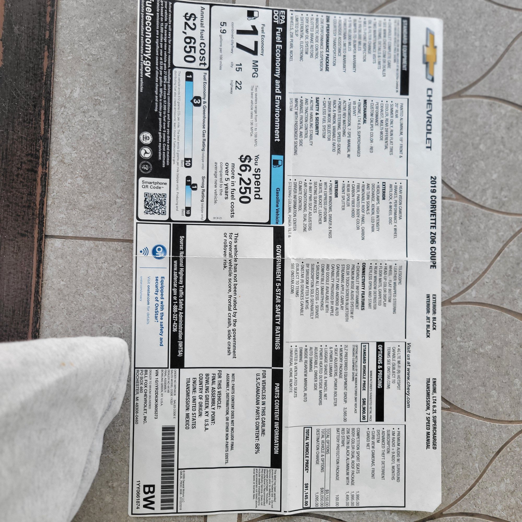 Hey that was a nice car, looked like it had the Z07 package but the window sticker did not show it, these manual cars are going to the moon, I have a 19 Z07 manual low mileage, going to break the bank to get it out of my garage