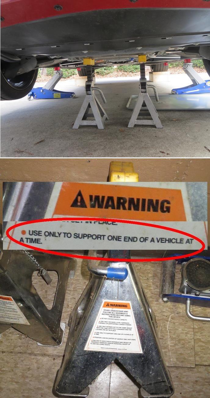I’ve seen posts from people who jack up one side of the car then place jackstands on one side then they proceed to jack up the other side in order to place two more jackstands. Talk about dangerous.