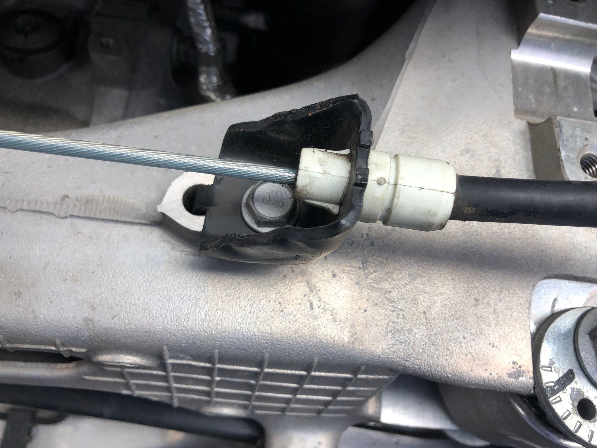 This is how things look like after the two brackets are removed and the parking brake cable is allowed to drop. There is now plenty of space to insert the sway bar.