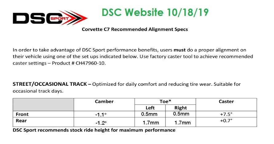I do have some questions about the latest graph from the DSC web site since they still do mention people using after market toe links set their toe to +1.5 mm Vs the -0.5 mm they used to recommend for track settings. Maybe there are some errors in the latest chart due to late night updating.