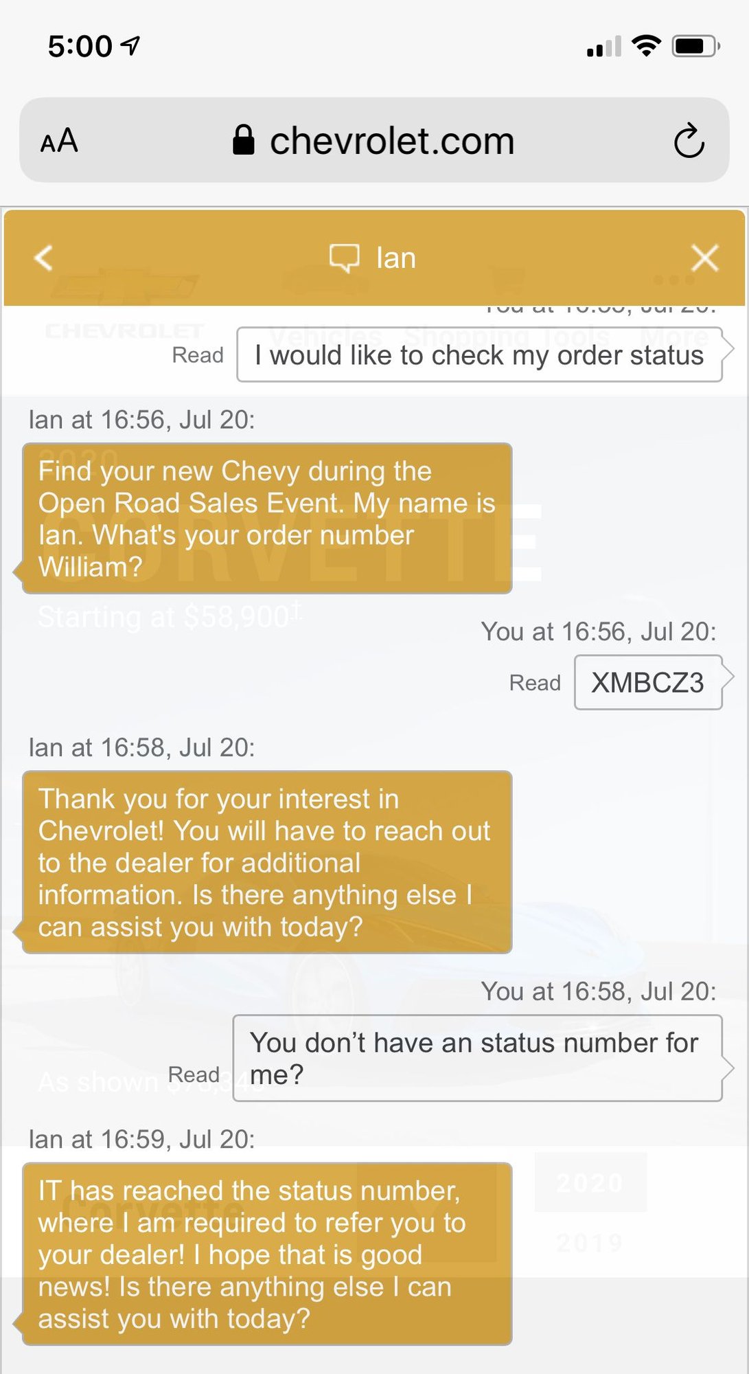 What does it mean? Maybe I haven’t been paying attention but I haven’t seen any other people get told by concierge that they can’t tell me the status of my order anymore and to check with the dealer.