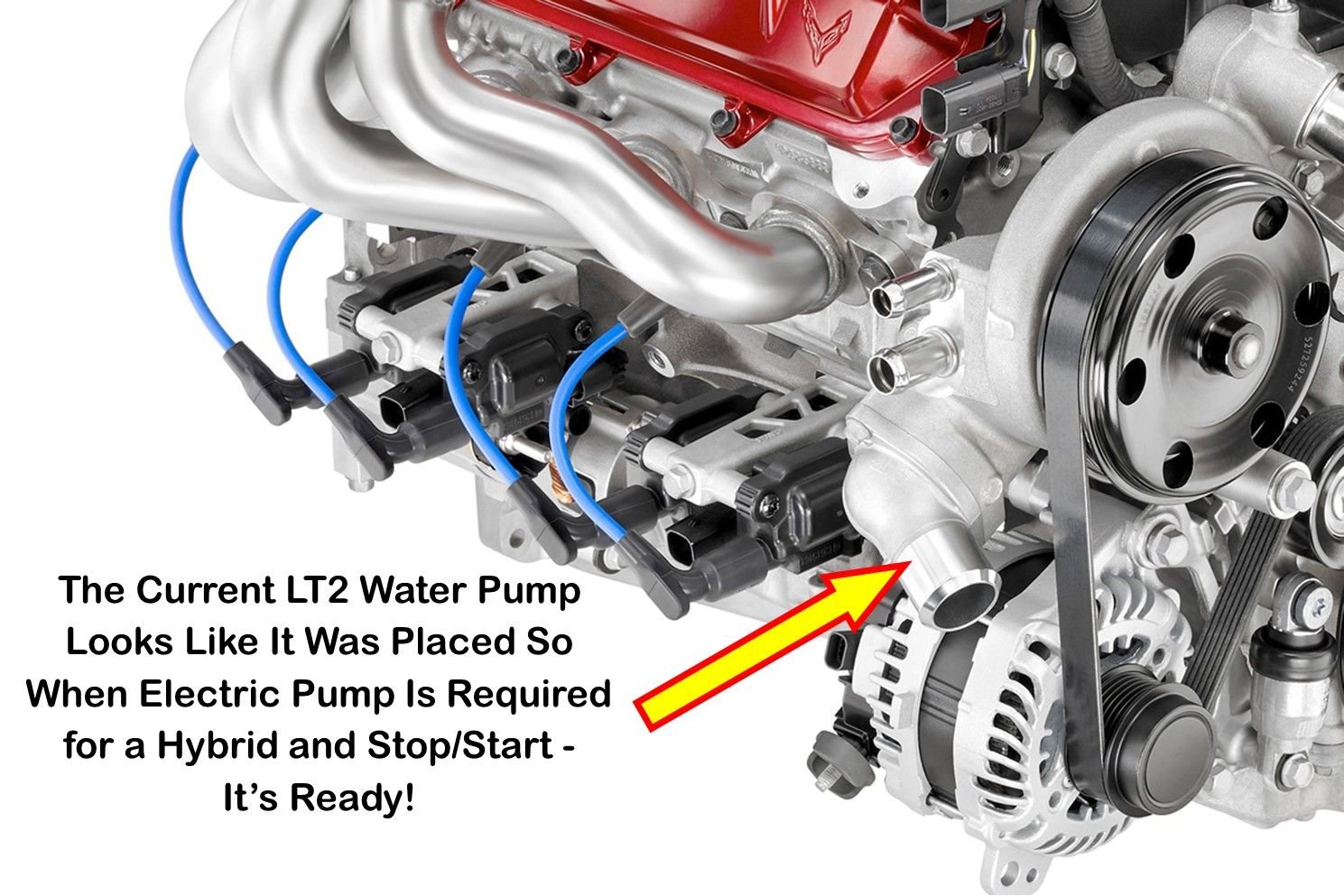 The upcoming ERay (at some point when required by law) will have to have an electric water pump. In fact I think this may be all C8's at some point. Tadge and company had to plan on that as if you look at the date of the press release link below it was about the time of the start of the C8 design. They Ferrari, Porsche etc all planed to meet the required law! No choice.