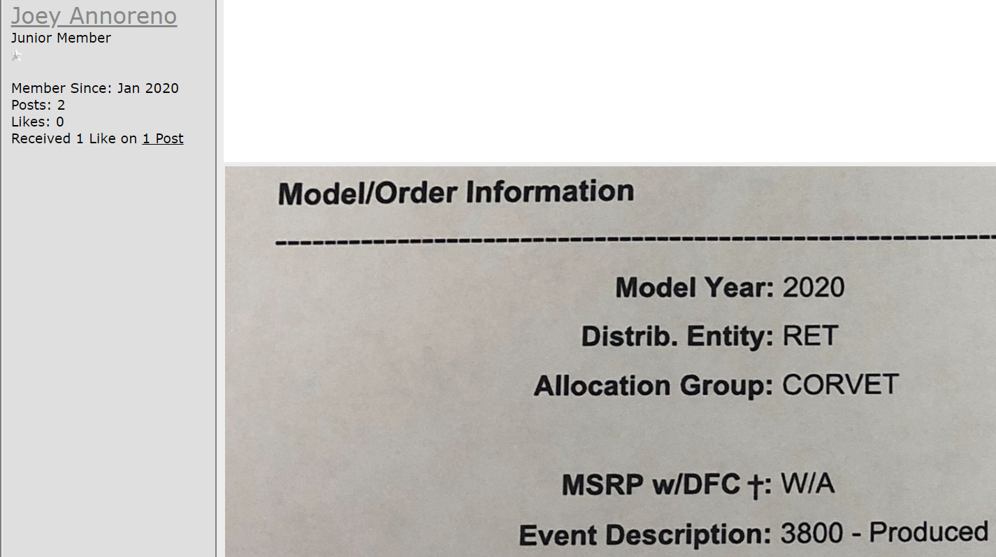 Now for all of you who will say I don't know what I am talking about or I am lying it very easy for you to find the truth. Any Chevrolet dealer can go into GM Global go to locate vehicle enter 2020 Corvette check search all models then search by event code 3800 all models produced and your dealer can see every one of these cars produced and what dealers are getting them!!