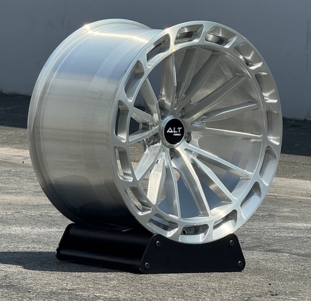 ALT Forged has engineered these wheels with a focus on style and performance. The 19x8.5 front and 20x11 rear fitment, or the 20x9 front and 21x12 rear fitment, offer optimized sizing to provide the perfect balance between grip, handling, and stability. The lightweight forged construction ensures reduced unsprung weight, enhancing acceleration, braking, and overall responsiveness.