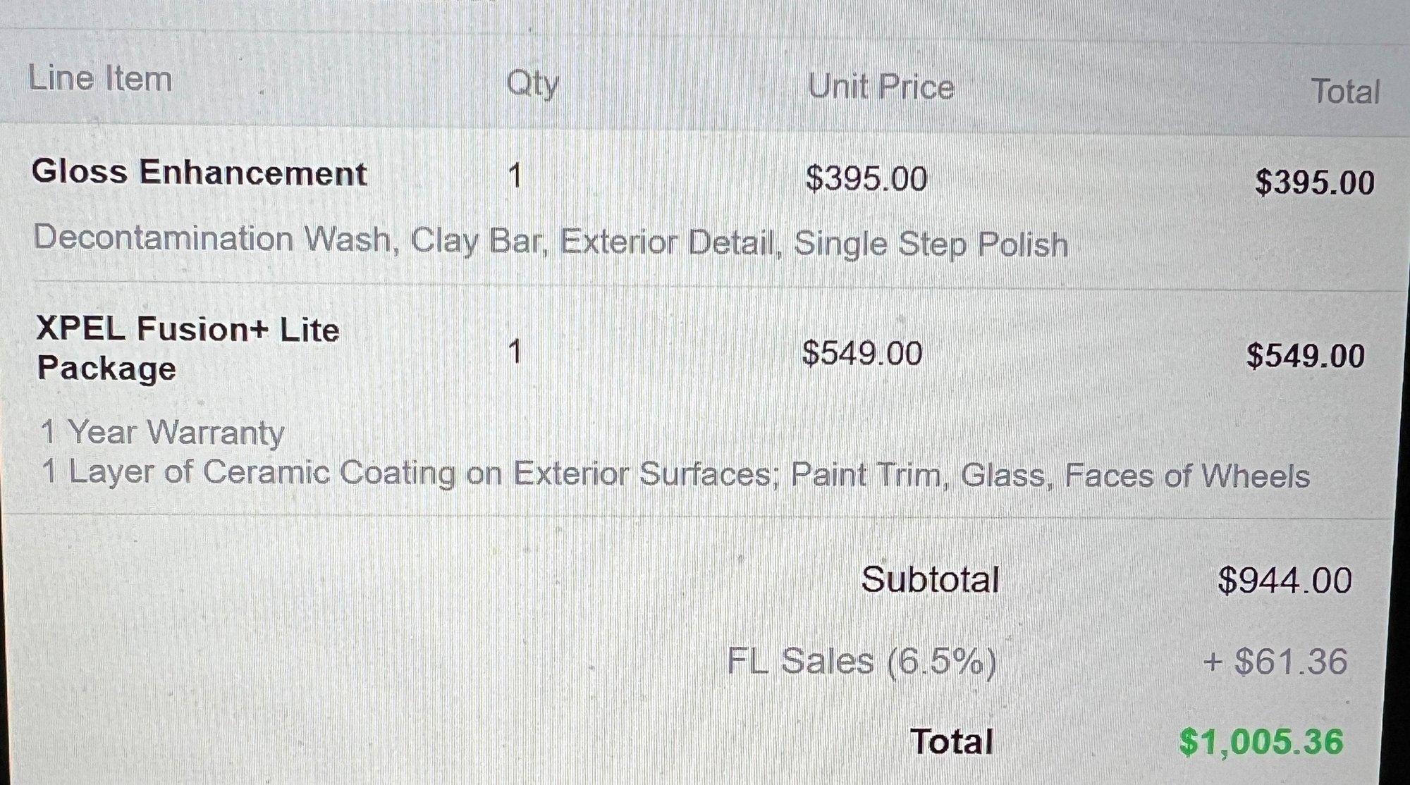 Thats pretty damn cheap IMO, much cheaper than quotes I got to have my car done in florida. There are almost always imperfections on brand new cars, and you really don't want to just coat the car and not have them decon, clay. and polish. I do cars on the side and that's about what I would charge to do the job and I have no overhead.