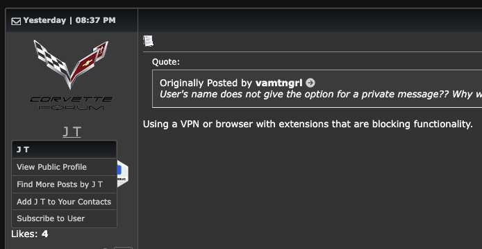 I am also stuck without the ability to send a PM. I am a new signup, long time lurker, but trying to PM someone about buying their C8! I'm not on a VPN and I don't have any blocking functionality enabled (as far as I know).
