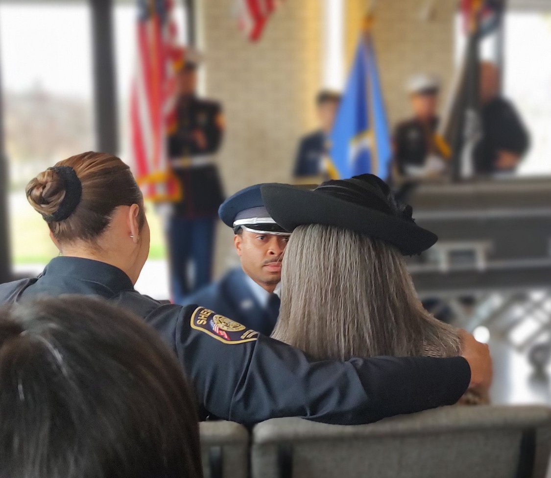 There was a ceremony in a small building at the cemetery with standing room only. I'd guess maybe 50 deputies overflowed outside the standing room only room. There were maybe 75 people in the room for the service. Chuck's fiance, his mother and other relatives were in attendance.