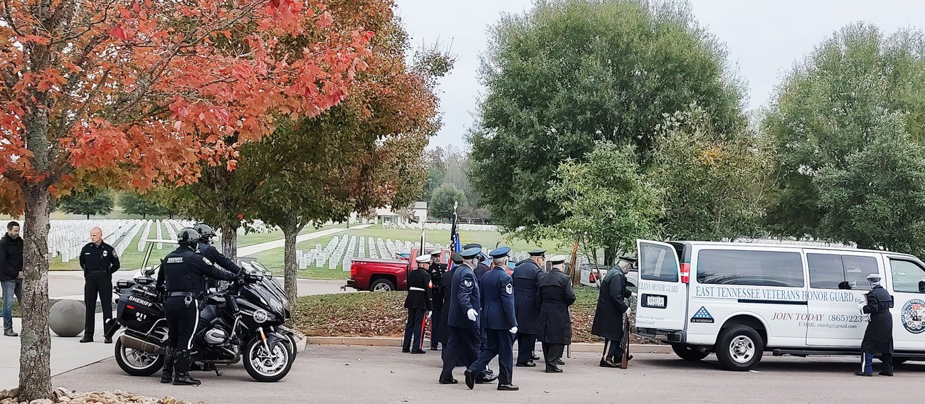 Interment will be at East Tennessee Veterans Cemetery at 2200 Gov. John Sevier Hwy., Knoxville, TN at 10 a.m. Tuesday, Nov. 19. There will be a procession to the cemetery from Smith Funeral Home at 402 Tuckachee Pike, Maryville. The funeral directory advises that those interested in participating in the procession should be at the Funeral Home ready to line up their cars at least by 9 a.m.