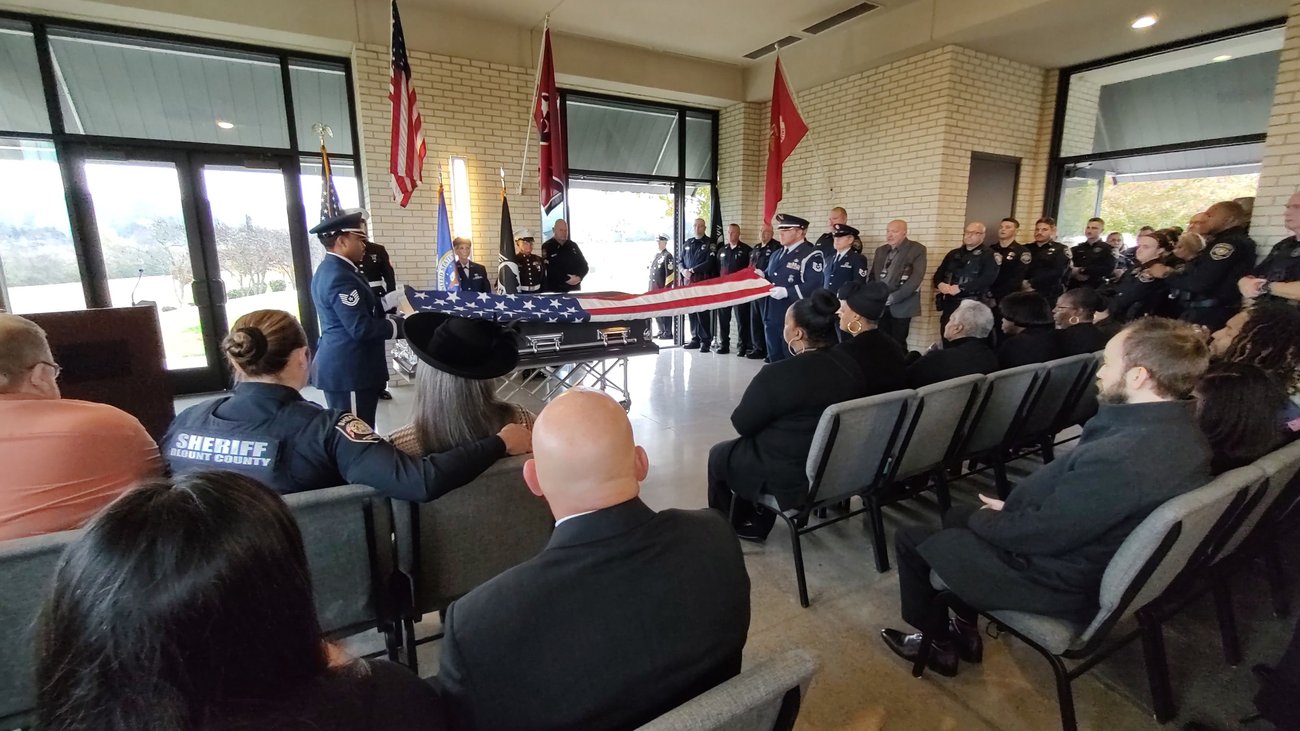 A chaplain from the Sheriff's Office spoke briefly. He noted that Chuck has left his body, the house of his soul while he was still with us, and is now at a house in heaven, where there likely is a Corvette in the garage.