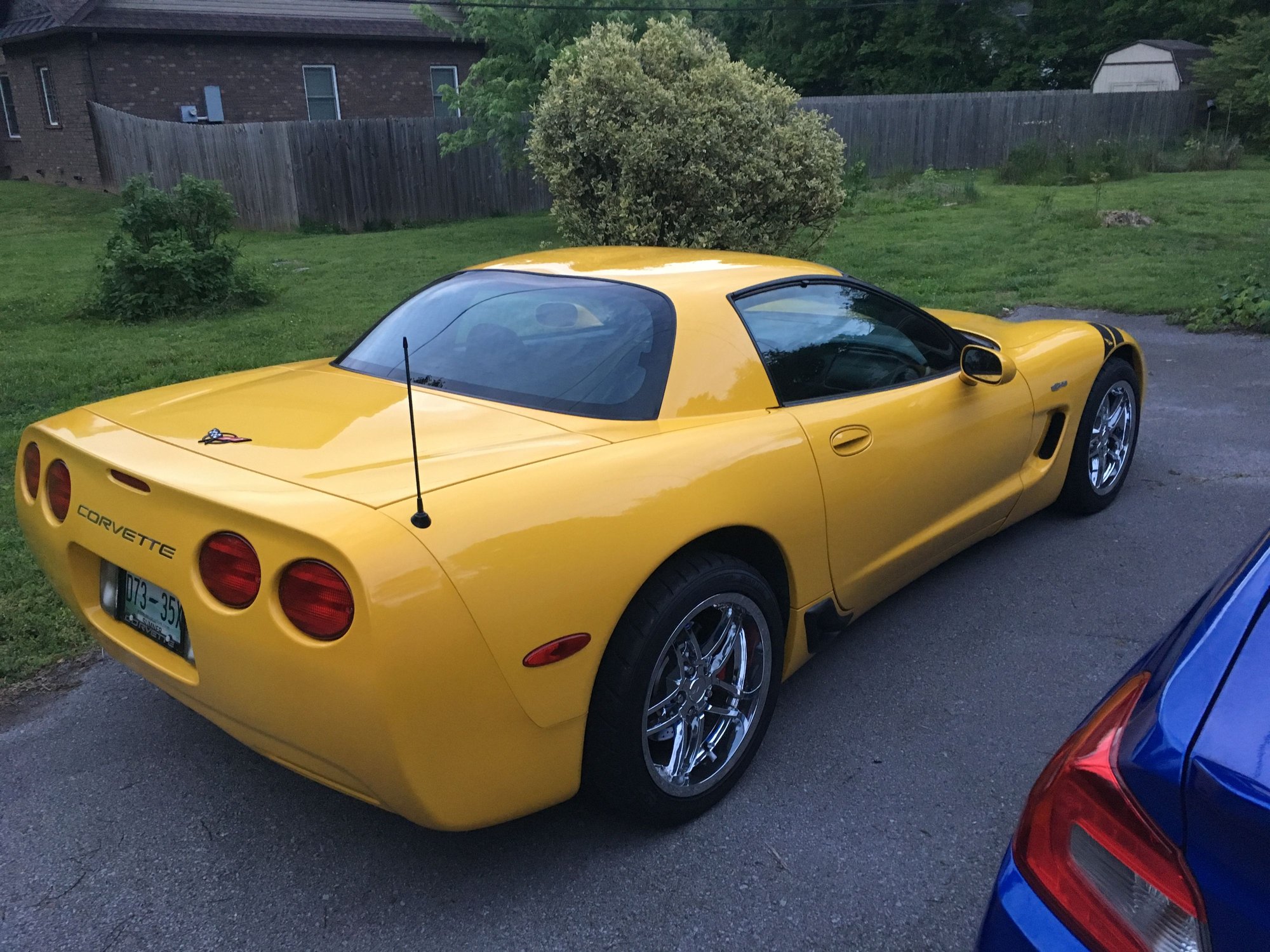 Its a 2002 zo6 with over 120,000 miles on it. I’m excited to start making that number go up, but I haven’t been driving it because I want to do the valve springs as a preventative measure. That happens tomorrow. It’s got some type of aftermarket exhaust system, and a B&M short throw shifter. A previous owner was into either Hulk Hogan or Guy Fieri and installed yellow leather shifter and parking brake boots along with custom painted yellow and red flame valve cover covers, windshield wiper fluid resivoir, uhh intake cover thing, and passenger side engine bay thing. I’ll be changing that. Haha. The hazard switch is bad, the parking brake handle is missing and was replaced by some chrome-ish universal fit guy that has a date with the trash can. The parking brake needs some adjustment. The shifter goes into 1st, but isn’t super excited about it. It might need a new starter or theft deterrent relay, as it didn’t want to start until I jumped the starter from the TDR yesterday. It isn’t perfect, but it’s mine!