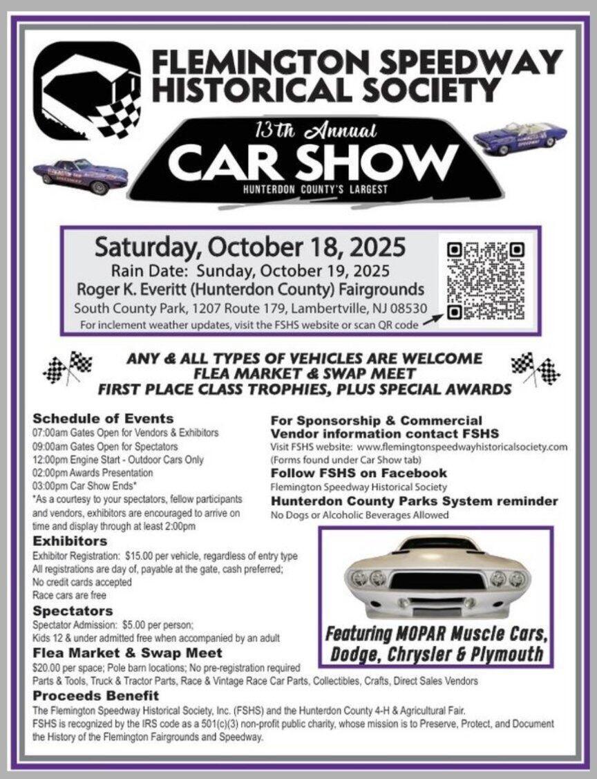 Huge Car Show Saturday Oct 18th - Hunterdon County Fairgrounds - Lambertville, NJ