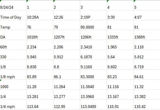 4th pass was my best 60f and ET, but on that pass and the 5th pass the trans really did not want to shift at 6500. I am guessing it's a clutch hydraulic issue.