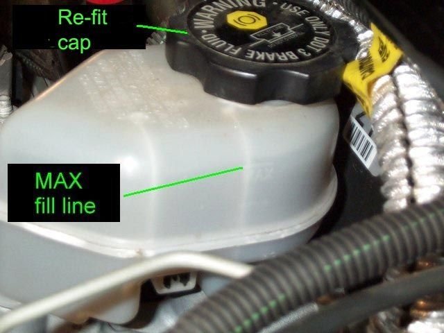 Add enough brake fluid to fill the reservoir, and then re-cap the reservoir.